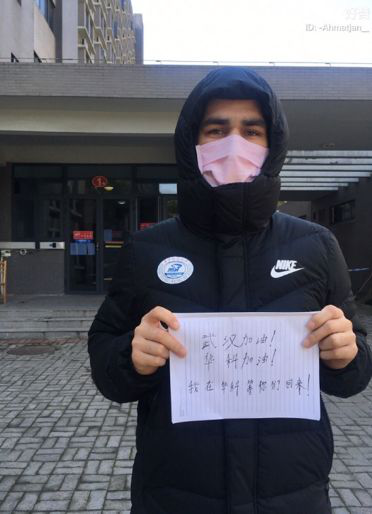 16级本科生艾合买提·托合尼牙孜,因准备全国老员工足球联赛而留校训练,疫情期间,负责统计留校的9名少数民族本科生用餐需求报给后勤集团,协调领餐,协助发放生活物资。