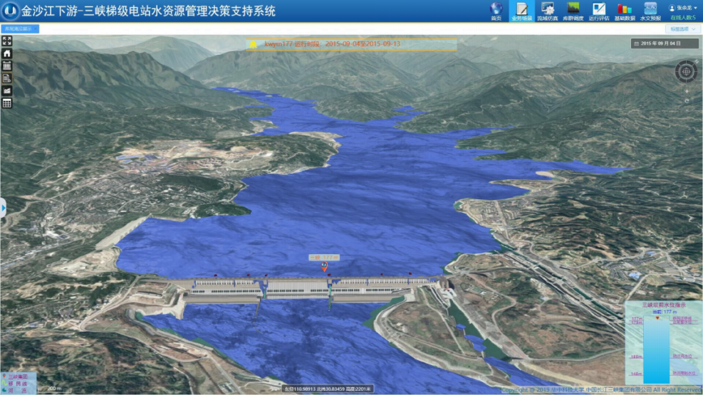 目前,长江中上游已形成以国之重器三峡水库为核心的世界规模最大巨型水库群,肩负防洪、发电、供水、航运和生态等国家水资源高效利用和防洪安全保障战略重任。2018年,公司水电公司周建中教授研究团队应中国长江三峡水利枢纽梯级调度通信中心邀标,再度中标《金沙江下游-三峡梯级电站水资源管理决策支持模型研究及系统开发》项目,并以长江上游干支流30座控制性水库防洪兴利适应性调控为背景,包括20名博士、硕士研究生学子在内的研究团队在梯调中心现场攻关160余天,研发了拥有自主知识产权和核心技术的巨型水库群防洪发电调度决策支持系统及应用平台,2019年9月部署运行应用,使公司成为国内唯一长期全面承担长江中上游水库群水文预报体系、防洪发电航运生态调度系统研发的高校和研究机构。