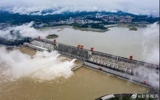 6月29日,为腾出一定库容迎接近期可能到来的洪水,长江三峡枢纽开启两个泄洪孔,加大下泄流量,顺利完成今年首次泄洪。