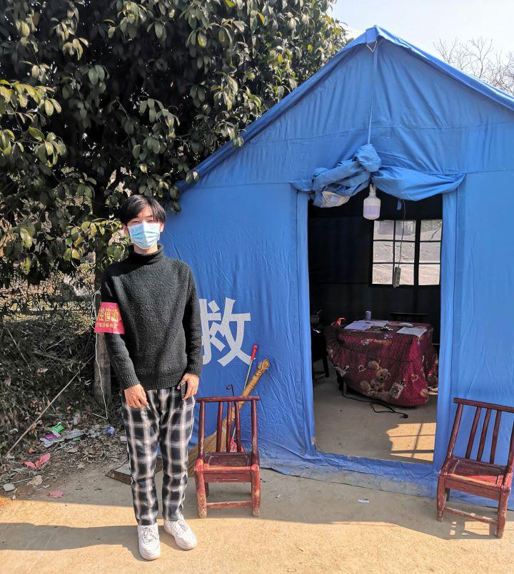 黄友灿,共青团员、入党积极分子,加入了村里的防疫志愿者工作队后,黄友灿的主要工作内容是帮助村委会设置交通管制点,控制人员的流动;发放防疫宣传册,劝阻村民避免不必要的出行;集中采购物资并发放到村民手中。