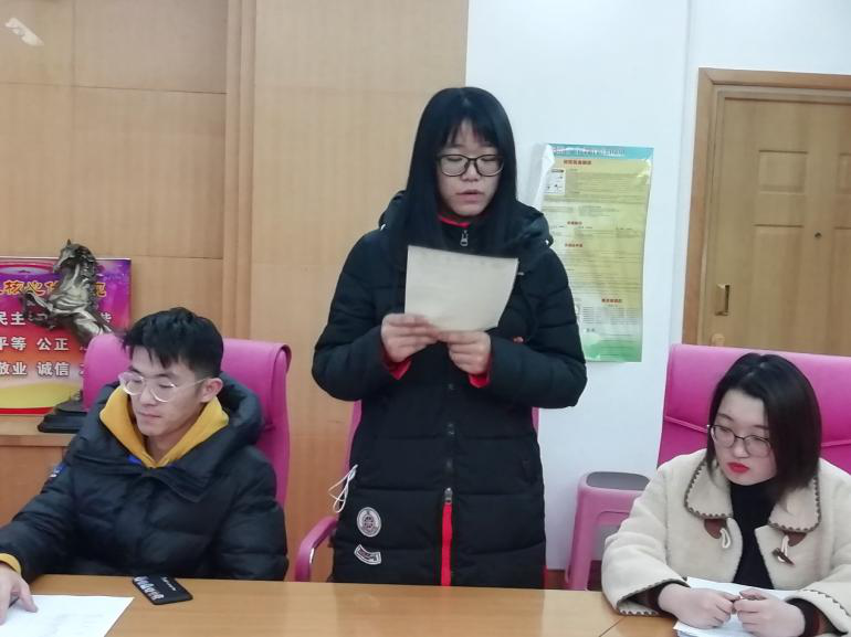 程贤良通报了到会情况,全体党员同志起立,奏唱国歌。转正接收启动。胡晓慧汇报了预备期的思想、工作情况,程贤良代表支部委员会报告了对胡晓慧同志在预备期的教育考察情况,经过无记名投票,支部大会通过了胡晓慧同志转为正式党员的决议。