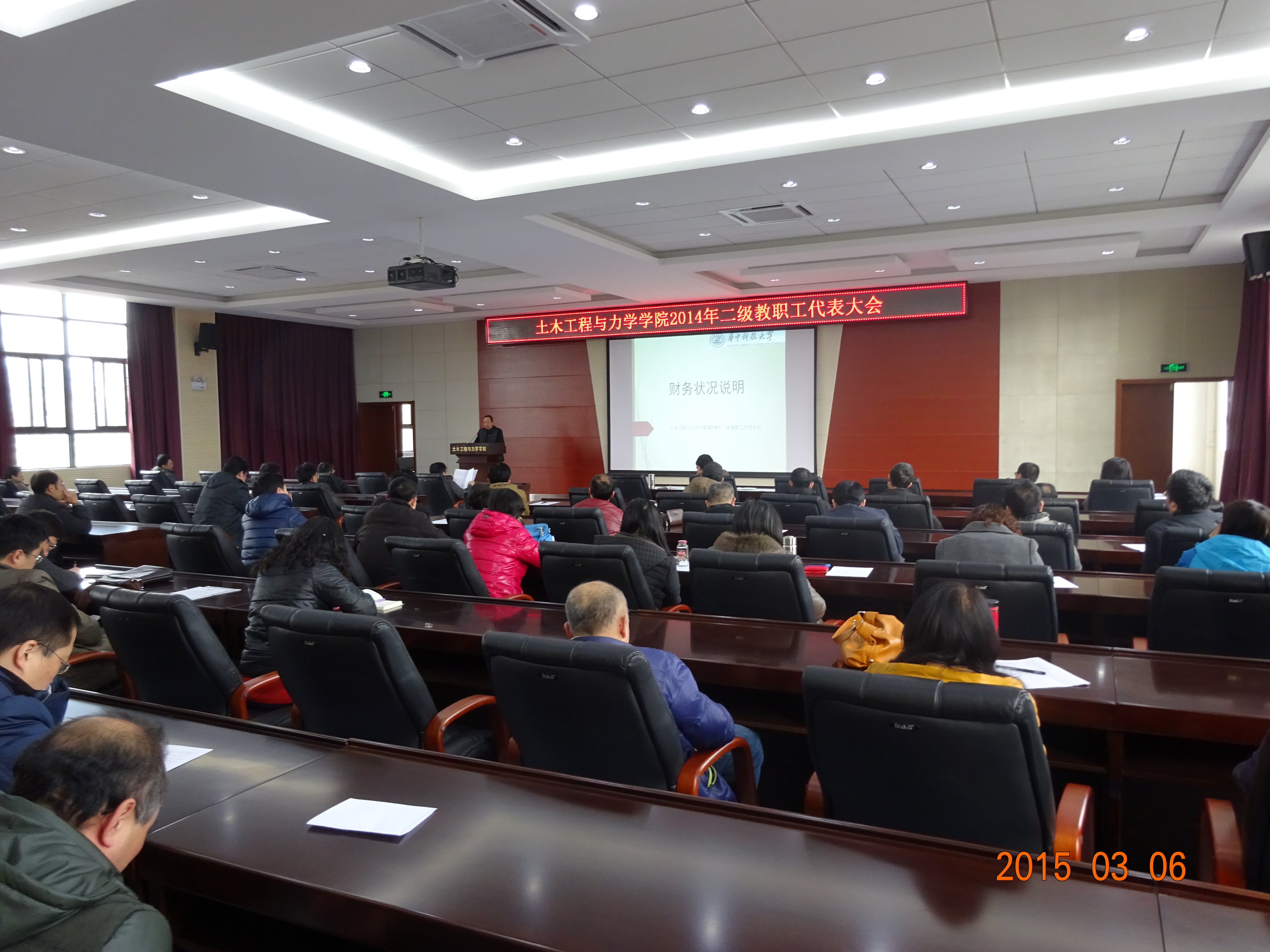 2015年3月6日下午,土木工程与力学公司2014年二级教职工代表大会召开。会议由公司工会主席樊建平主持。