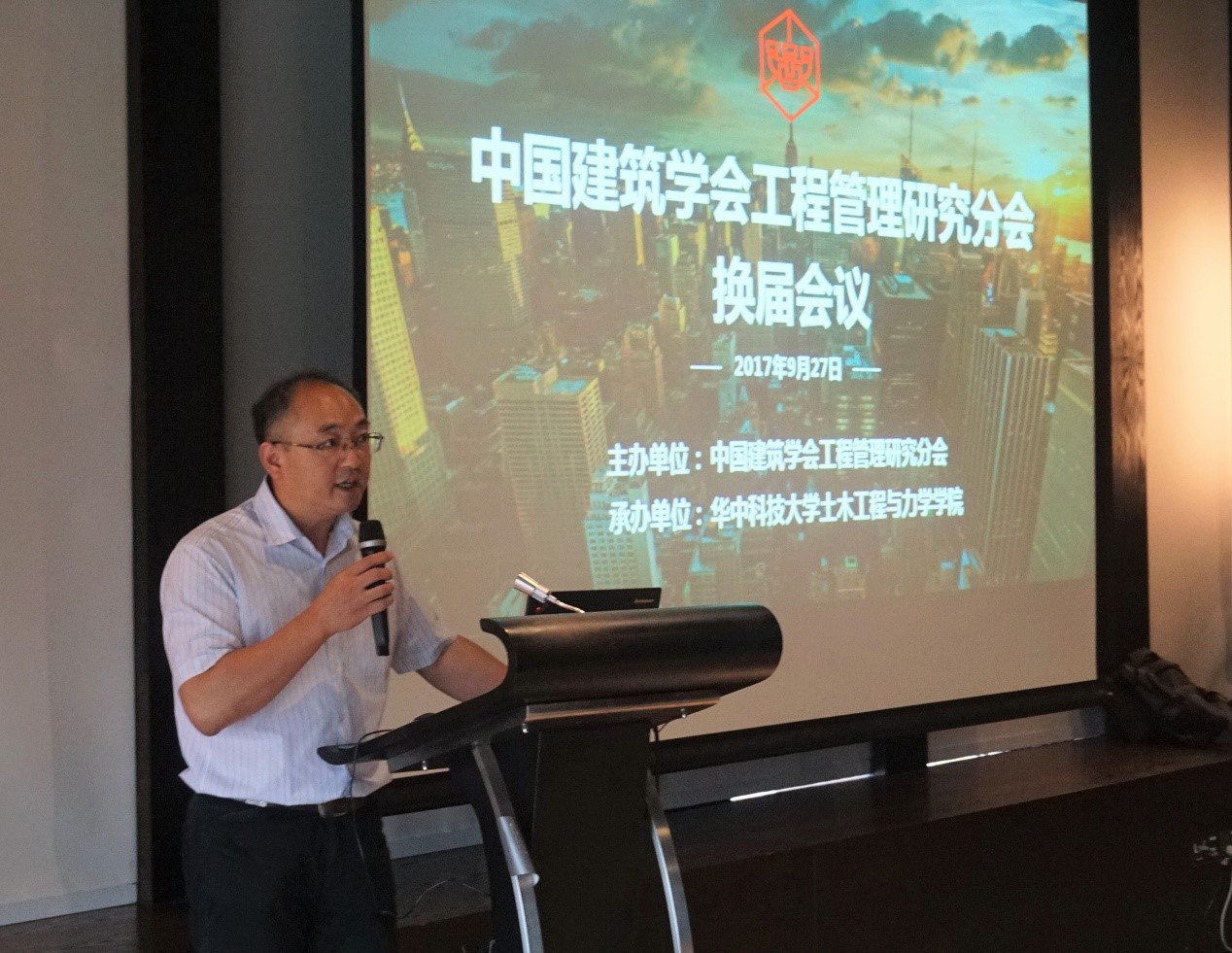 第八届理事会名誉理事长丁士昭教授在会上讲话,对本届理事会发展和工作出了展望:希望分会多增加一些来自企业的代表,多听一些企业代表的意见,继续保持分会紧密联系工程实践的特点;也希望在第八届理事会全体成员的努力下,工程管理研究分会能在国家建筑业发展过程中做出更大的贡献。