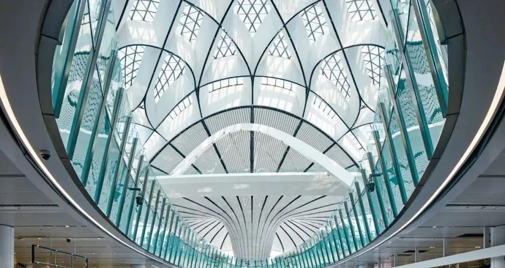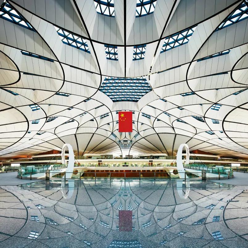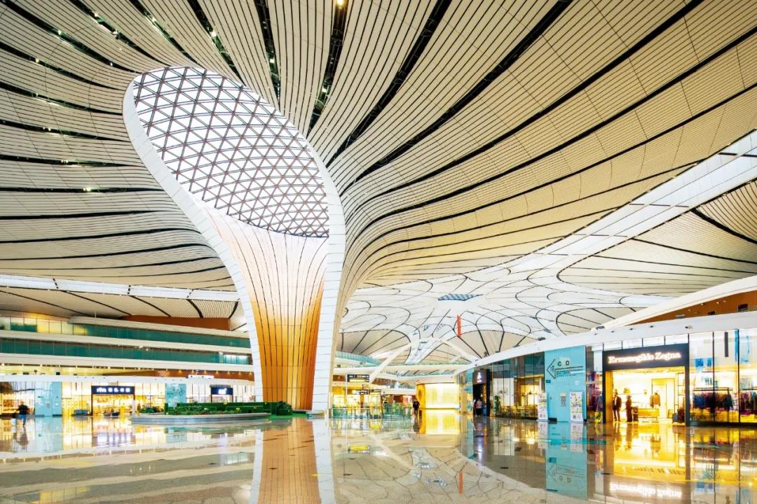大兴国际机场在建筑造型上突破了欧几里得几何逻辑的限制,采取了一种造型生动的黎曼几何曲面逻辑,把我们的非线性建筑设计建造水平、结构设计水平以及施工水平都带到了一个新的高度。