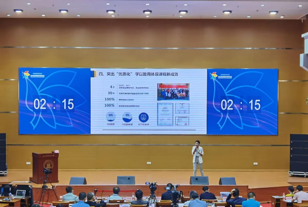 全国赛考核分为教学设计汇报和提问答辩两个环节。在比赛中,张誉千老师从容自信,现场表现出色,结合教学大纲和自身教学实践,生动而全面地阐述课程的设计思路,突出教学改革与创新的特点,表现出了极高的专业水平,赢得评委一致认可,最终在比赛中荣获了全国一等奖。