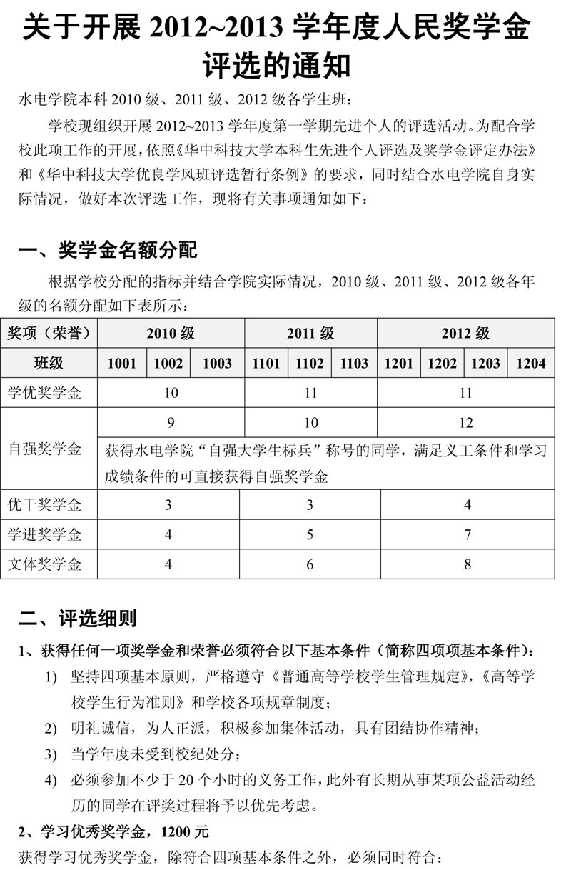 永利3044集团官网开展2012~2013学年度人民奖学金评选的通知