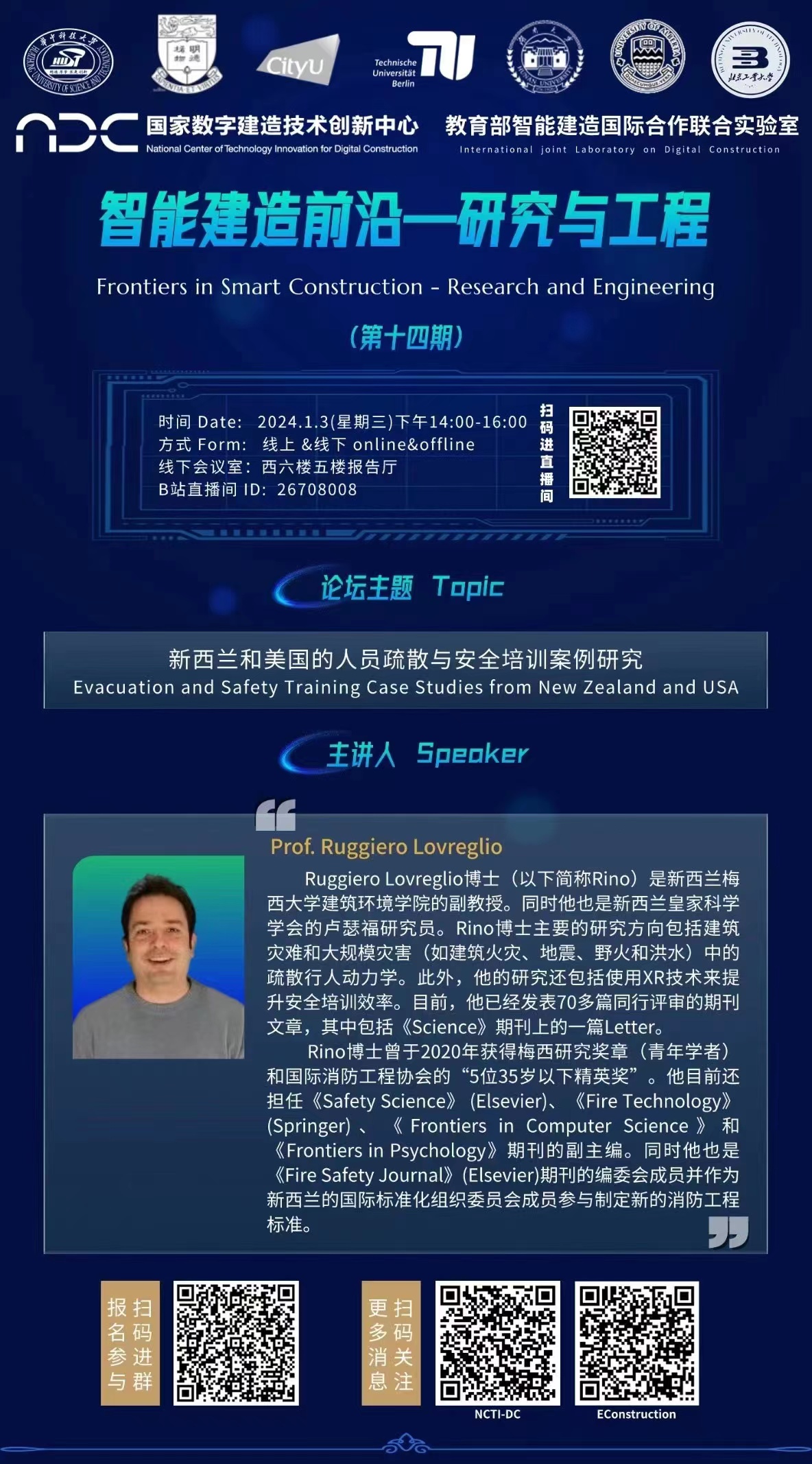 “智能建造前沿—研究与工程”论坛第十四期将在1月3日下午14:00于线下线上同步举办,欢迎进群交流分享!
