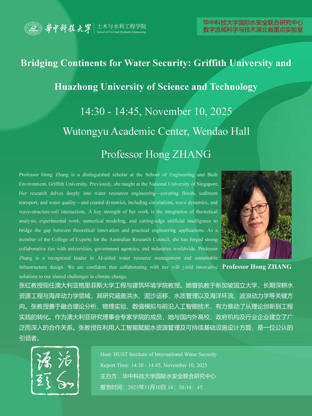 【学术报告】Bridging Continents for Water Security: Griffith University and Huazhong University of Science and Technology