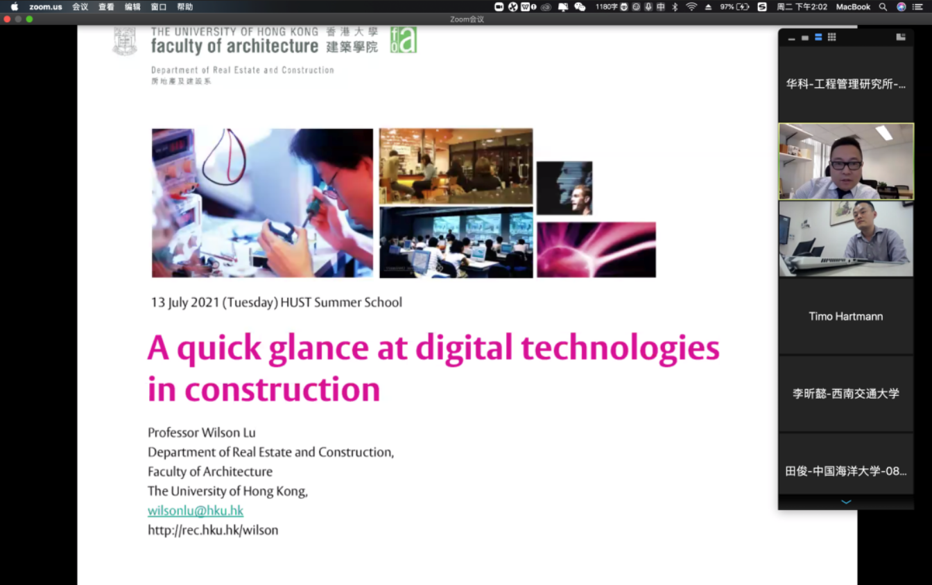 香港大学的吕伟生教授的报告主题是“A quick glance at digital technologies in construction”。