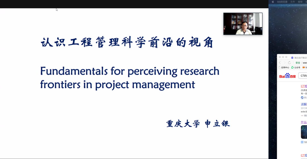 重庆大学的申立银教授带来首场报告,报告主题为“认识工程管理科学前沿的视角”。