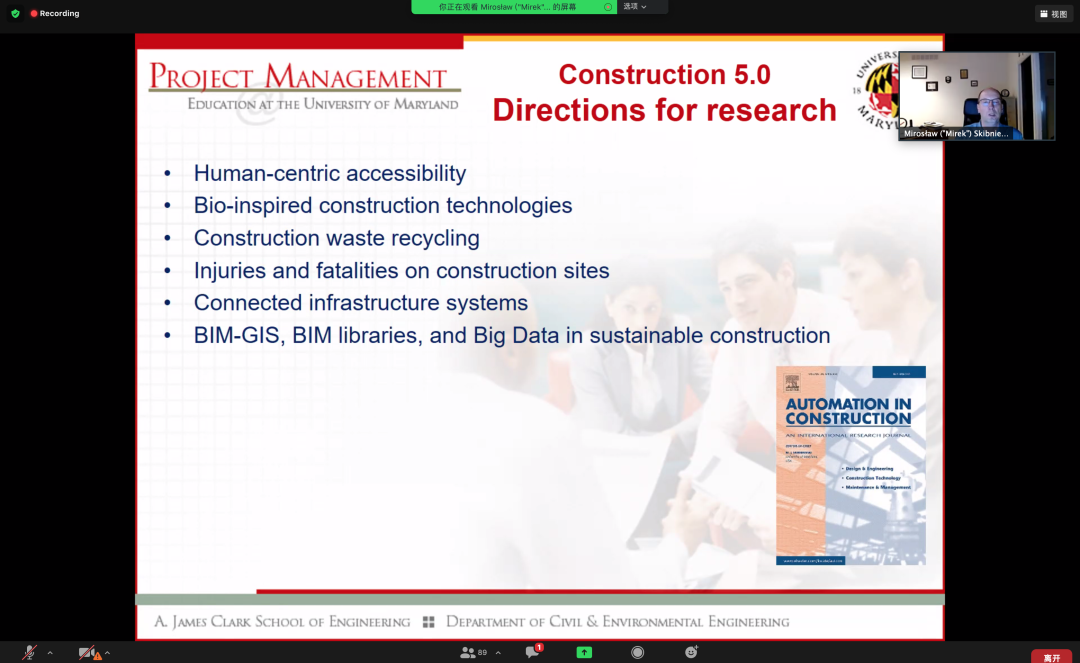 马里兰大学的 Miroslaw J. Skibniewski教授作了关于“Construction 5.0 Directions for research”的报告。