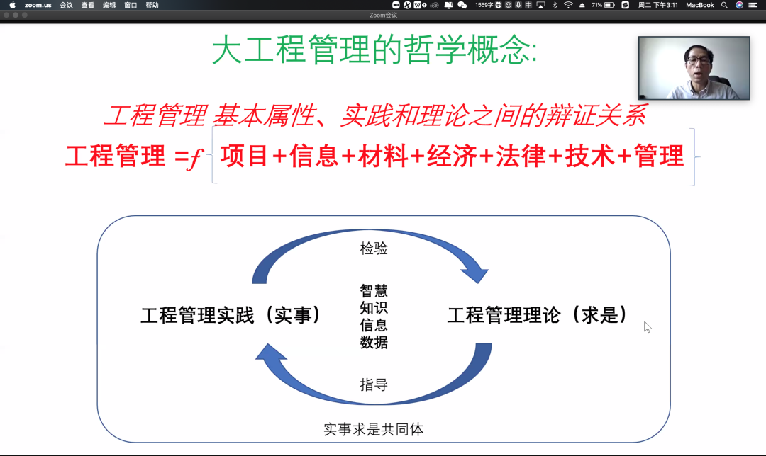 长安大学的邹小伟教授就重大工程展开报告,阐述了大工程管理的哲学概念。
