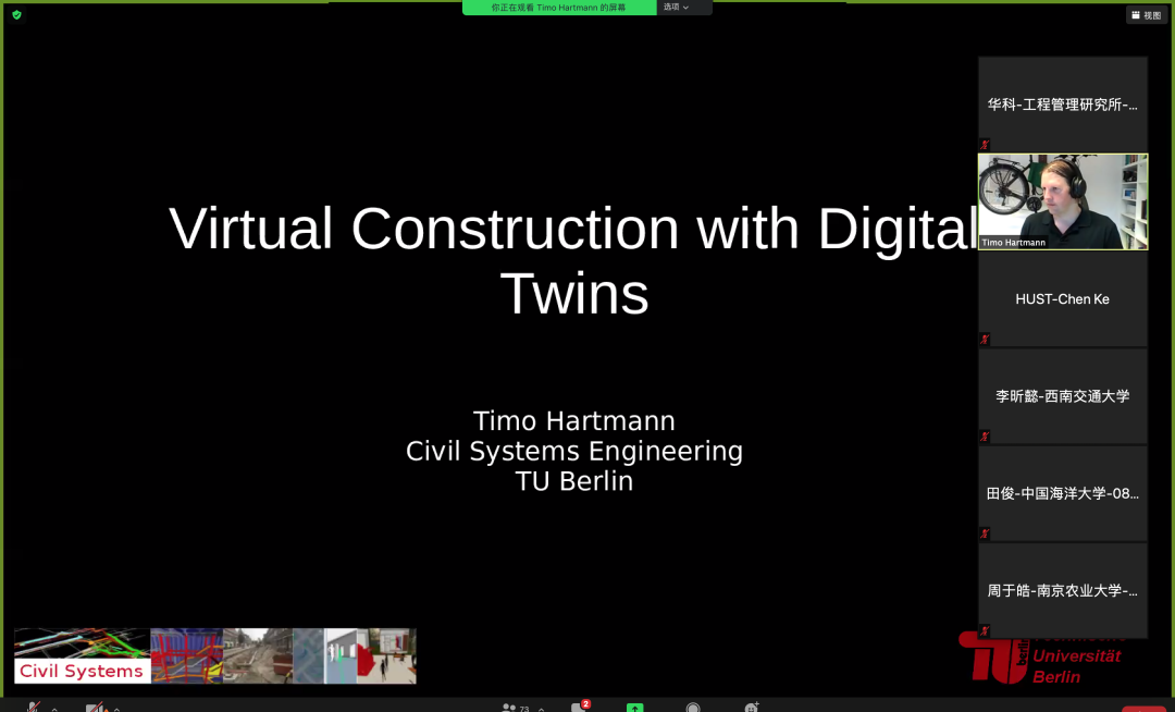 柏林工业大学的Timo Hartmann教授的报告主题是“Digital Twin supported Lean construction management and control”。