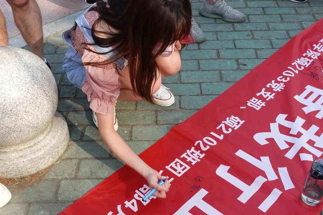 最后,党支部成员们集体在南大门毛主席像前签名、合影。此次校园越野藏宝行将党史、团史、校史学习贯穿于全过程,引导同学们以不同的方式了解校史,熟悉校园标志性建筑。通过小组团结协作,沟通交流,不仅促进了支部交流、党团共建,更在形式多样的打卡活动中强化了支部成员爱党、爱国、爱校的理想信念,积极响应了习总书记关于要培养德智体美劳全面发展的社会主义建设者和接班人的号召。