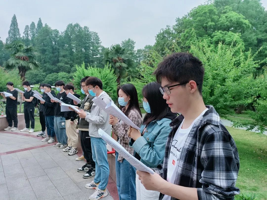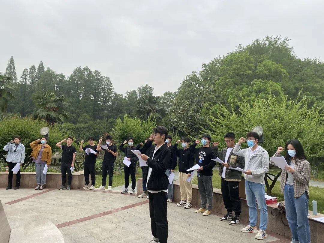活动第一项,党务中心成员宋时平介绍总书记讲话的主要内容。他总结到,在讲话中总书记全面回顾100年来共青团坚定不移听党话、跟党走的青春历程,充分肯定共青团为实现中华民族伟大复兴中国梦所作出的重要贡献,深刻阐明共青团和青年工作的历史经验,对当代青年寄予殷切期望。随后他带领现场师生重温入团誓词,“我志愿加入中国共产主义青年团,坚决拥护中国共产党的领导……”,团员们高举右臂,坚定而有力的宣誓带着团员们重温了那庄严时刻。