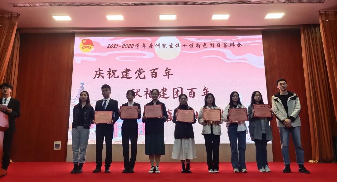 该联合团支部以“牢记英雄模范,弘扬伟大精神”为主题,从学、思、践与悟四个方面开展答辩,在短短的五分钟答辩中加入了轮流朗诵、知识竞答表演和笛子伴奏的丰富形式,将答辩会现场的气氛推向了高潮,通过联合团支部成员共同的精彩演绎,最终成功获评永利3044集团官网2021-2022学年度研究生校十佳特色团日!