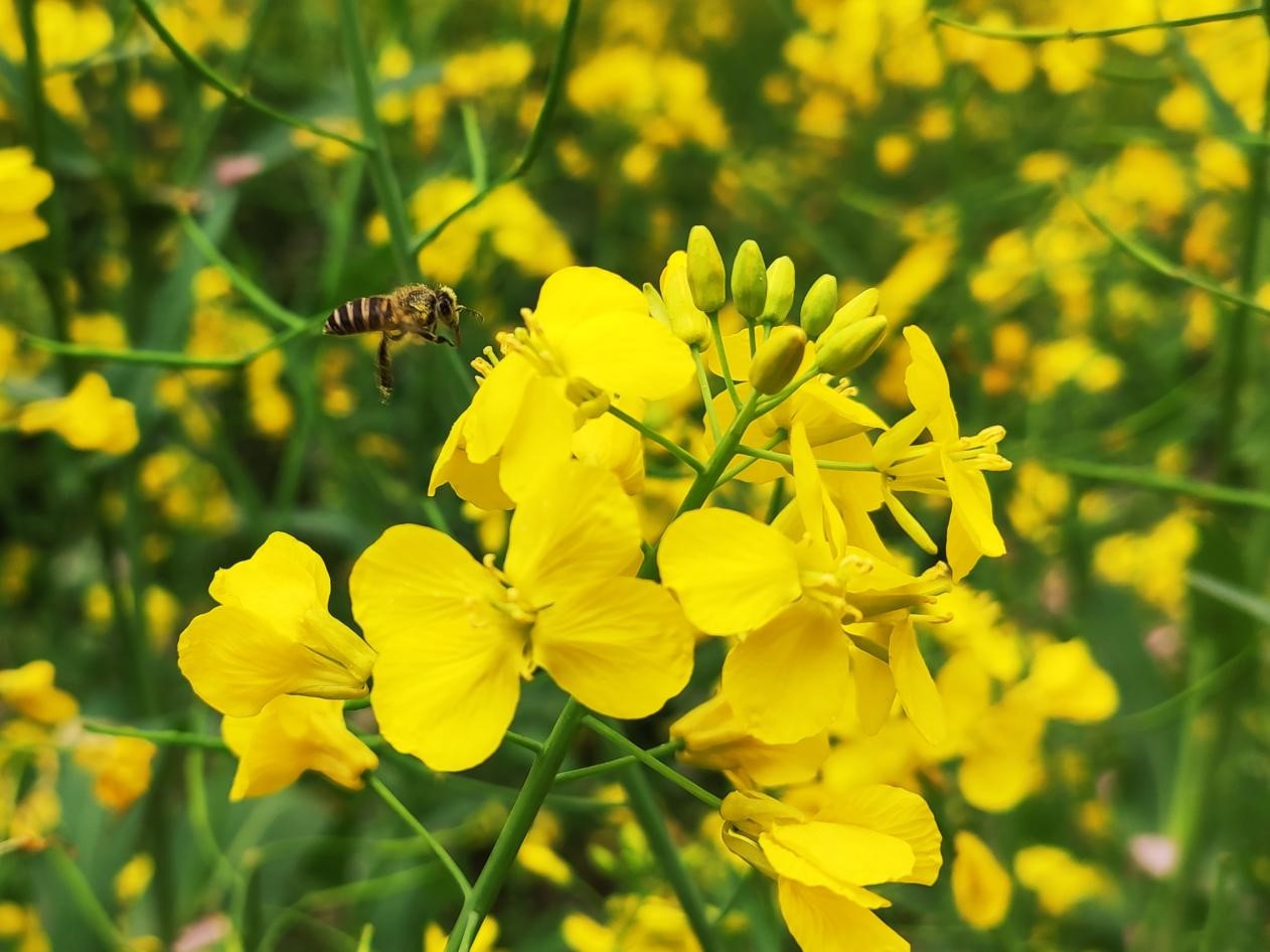 覃叶红萍:甜甜的油菜花为春日增添了一抹明艳,也引来了馋嘴儿的蜜蜂,一切都是那么可爱。