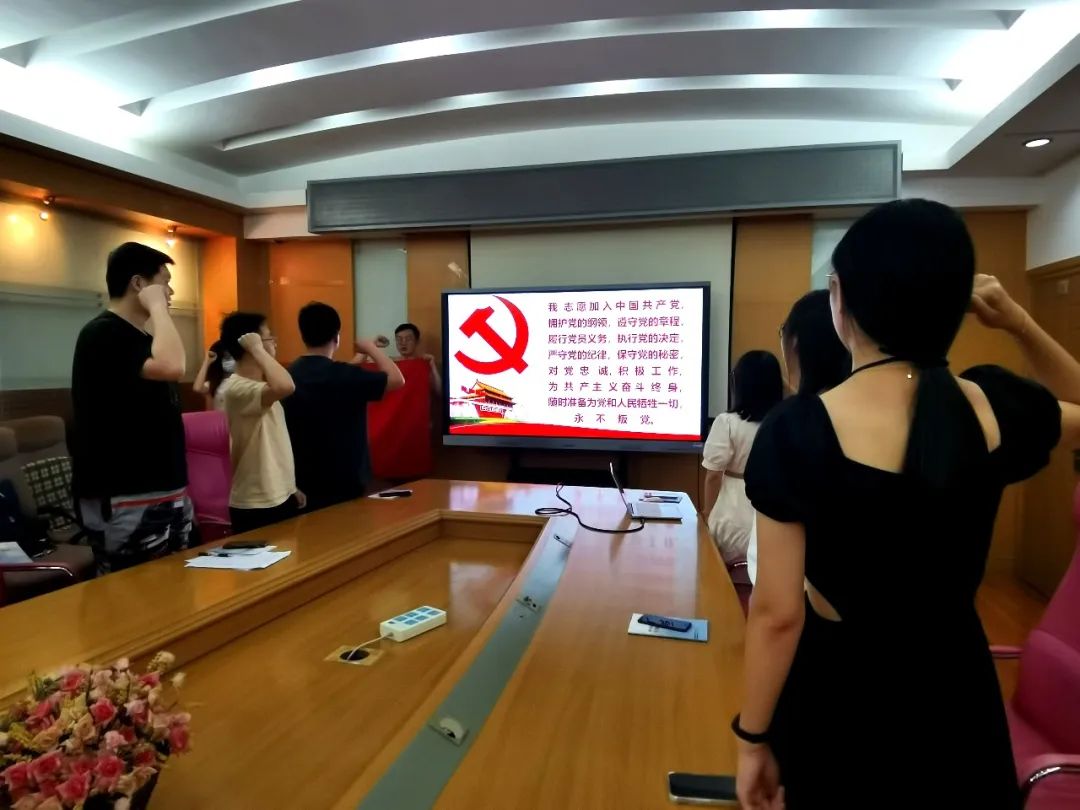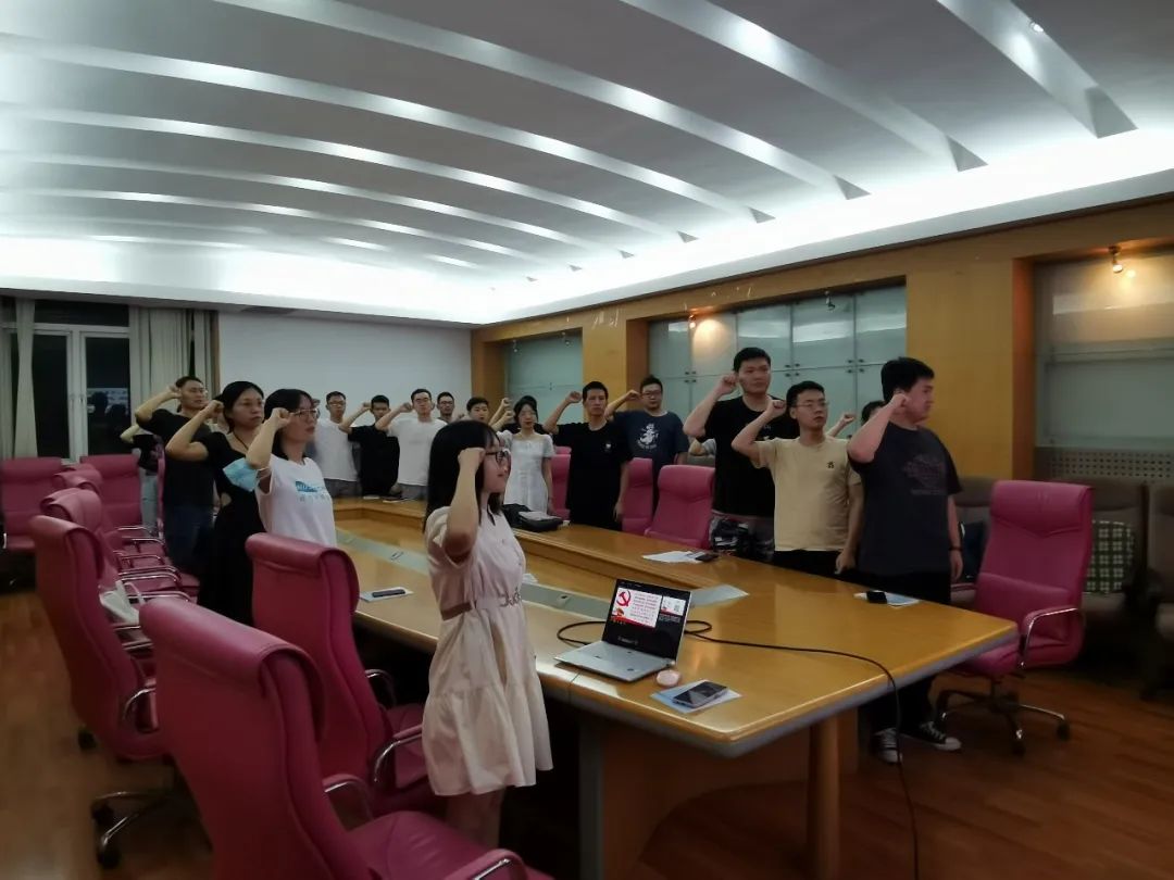 会议最后,由支部书记覃叶红萍同志带领全体党员同志在党旗下重温入党誓词,支部副书记陆雪顶同志组织支部全体党员交纳党费并进行登记。至此,研究生水电第五党支部六月党员大会圆满结束。