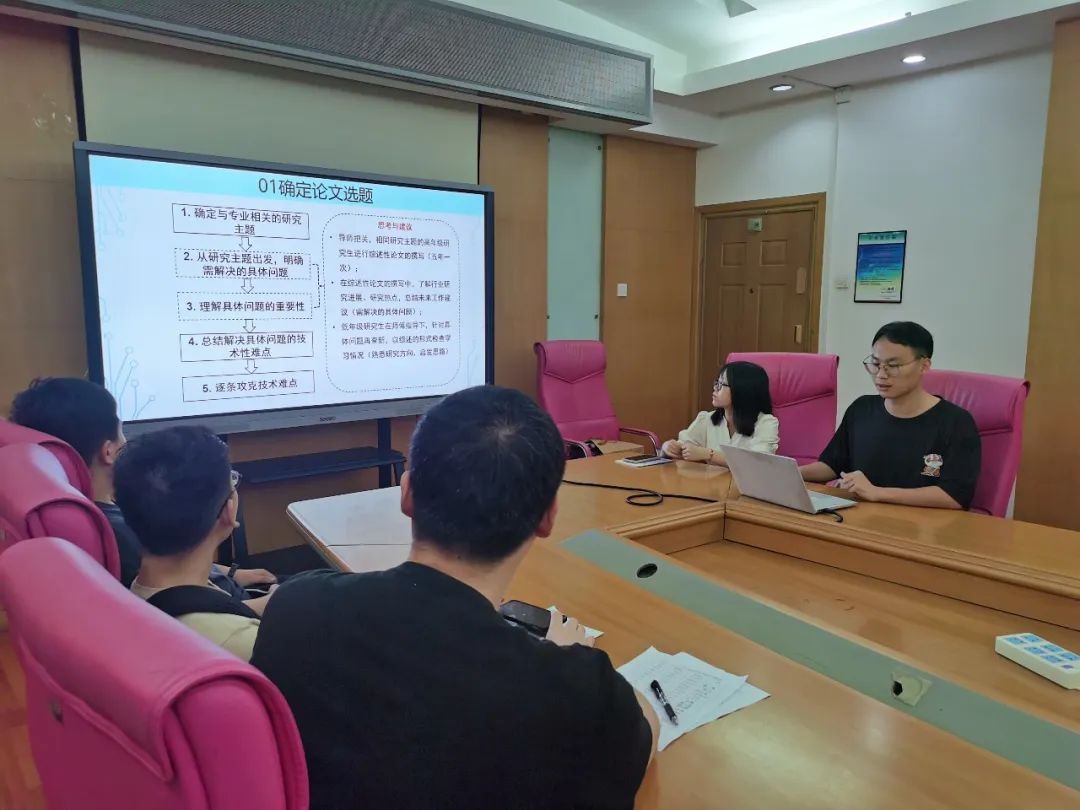赵坤杰同志向大家分享了学术论文的写作经验,建议大家明确需要解决的具体问题,进而总结出技术性难点并逐条攻克。同时,他为大家总结了确定研究思路与论文撰写的顺序、各个部分中需要注意的要点以及对论文进行规范化检查调整的方法。他总结了处于不同年级的同学的选题方向,并建议大家应该做到选题精细而立意深刻,一点之见即可成文