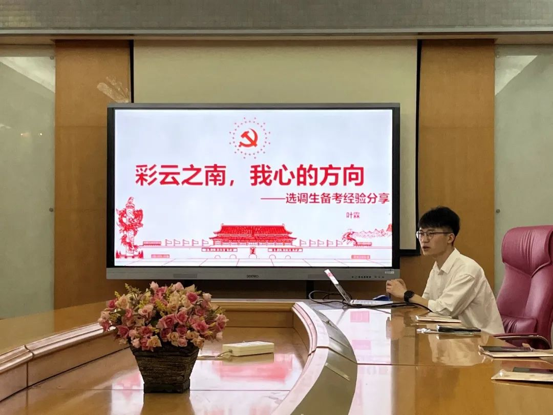 活动开始叶霖师兄带来了选调生备考经验分享,介绍了选调的类别以及说明选择选调这条路应具备强烈的家国情怀,热爱从事行政协调类工作。叶霖师兄展示了2022届各省笔面试内容并分享了自己的备考经验,最后对于求职过程总结了自己的心得体会。