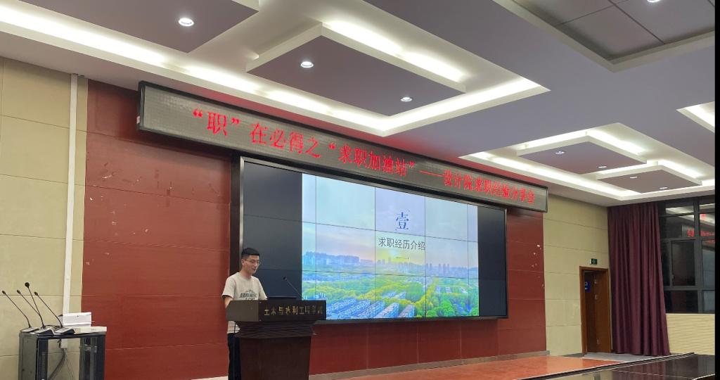 接下来水利工程专业的常新雨学长以求职流程为主线,围绕求职经历、求职准备、面试情况及资源分享四个要点分享了自身在水利类设计院的求职经验,介绍了水利类设计院的工作特点。常新雨学长建议同学们在求职前期,确定职业方向和发展目标,丰富个人实习经历,把握秋招黄金时间,及时投递简历。对于简历制作要言简意赅、突出亮点、布局合理。同时拓展求职信息的收集渠道,注重汇总求职信息与时间节点,多方对比分析。