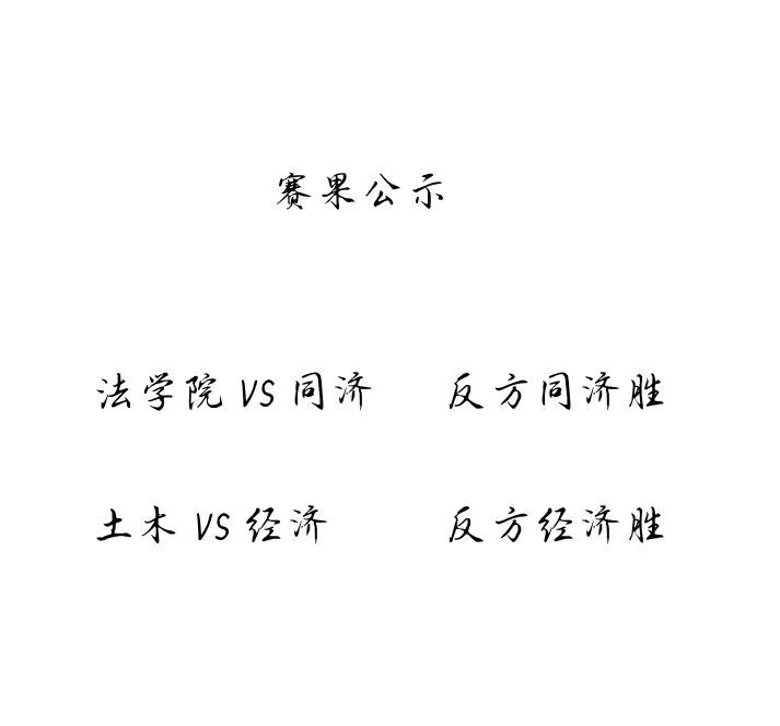 至此决赛的入场券已经由经济公司和同济公司的辩论队握在手中了,期待他们接下来在决赛的战场上更加激烈的角逐!