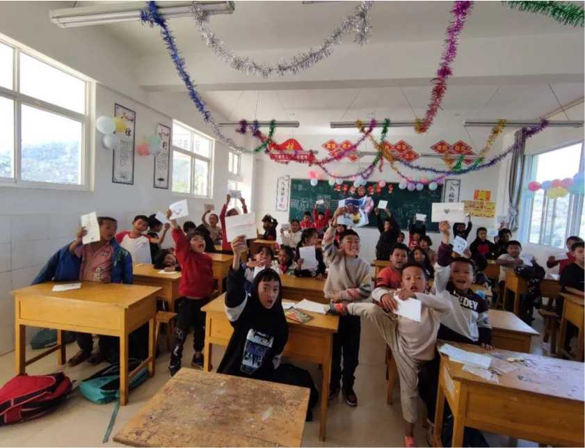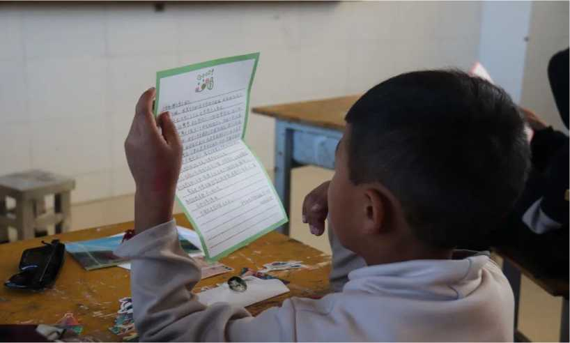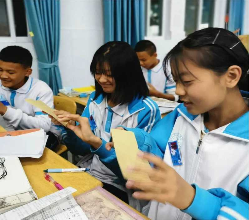 小小信封满载真情实感。孩子们一笔一划写满的小小信纸如此,收到的画着温暖微笑和可爱图案的回信亦然。在经过长达一个半月的漫长等待和盼望,孩子们的信终于来了。在课堂上拿出回信时,每一位同学眼中都泛着期待的光,原本闹腾的教室呈现出罕见的安静,坐在座位上目不转睛地看着老师手中的信件,满心期待着老师念出他们的名字。有的孩子迫不及待地撕开封页,聆听来自远方的哥哥姐姐们的分享和指导;有些平时大大咧咧的孩子,也变得小心翼翼,仿佛害怕撕坏了这来自远方的哥哥姐姐们的心意。读着大哥哥大姐姐们温暖的文字,他们的眼里或闪烁着兴奋、好奇,或闪烁着微微期盼,或是用心感受着来自千里之外的偏爱,或用眼睛编织着他们的心灵故事。在班级中传阅信中夹带的明信片和照片,憧憬着山外的世界与老员工活。