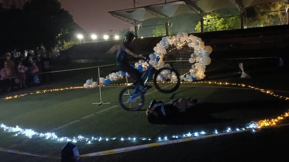 在舞台表演区,各个社团先后带来了兼具社团特色和艺术观赏性的高质量演出,演出高潮迭起、精彩纷呈,现场观众掌声不断。自行车协会也为大家带来了精彩的街攀表演,紧张而刺激的氛围及超高难度的动作引起场上一片欢呼。