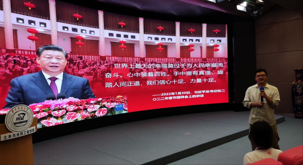 在今年党的二十大召开之际,永利3044集团官网也将迎来建校70周年校庆。为深化学习和宣传贯彻习近平新时代中国特色社会主义思想,推动党史学习教育常态化长效化,迎接党的二十大胜利召开,9月29日晚,永利3044集团官网于水电仿真中心三楼报告厅开展“同上一堂党课,共庆校史70载”主题讲座。本次讲座特邀来自研究生红色理论学讲团的汪建辉、喻文婷两位讲师,近50位同学来到现场聆听讲座。此次讲座在国庆校庆来临之际,引导研究生学习党史校史,从中汲取初心力量,领悟红色精神,牢记红色使命,传承红色基因。