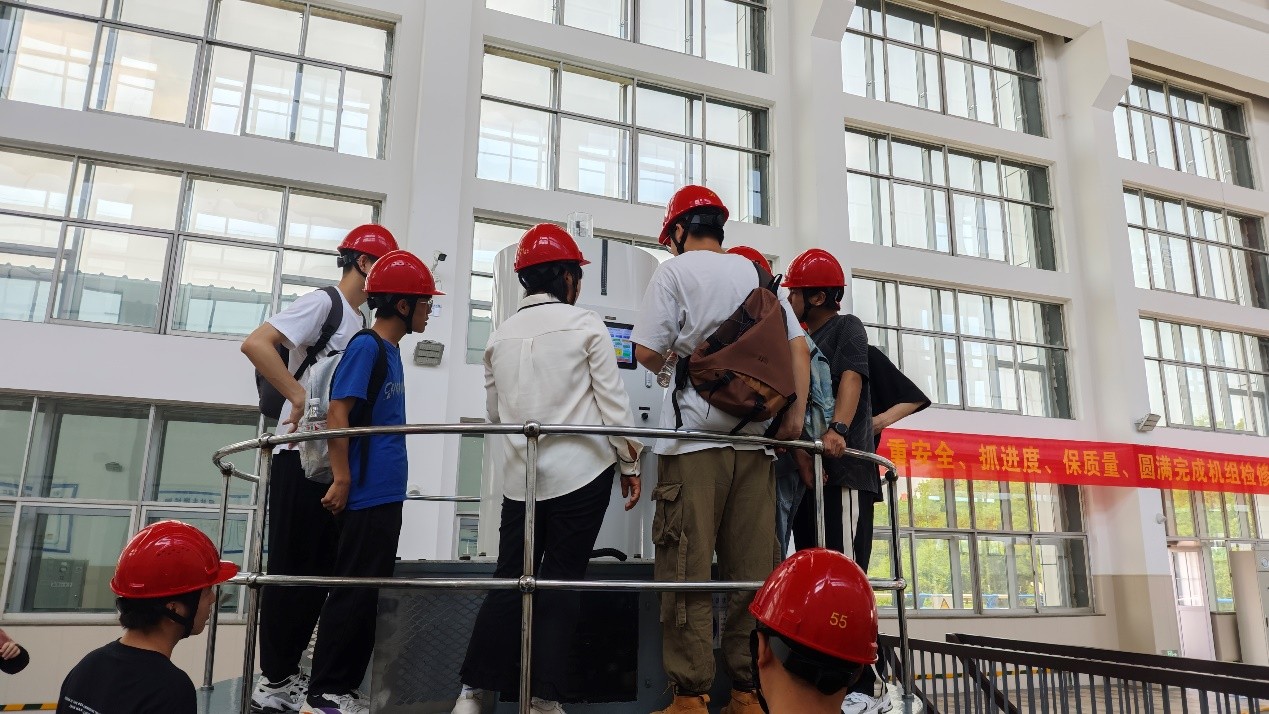 师生一行先后参观了樊口大闸、樊口泵站一站、樊口泵站二站。在参观泵站时,员工11人左右为一组,共分为四组,配备一名教师和一名经验丰富的泵站技术人员进行讲解。从拦污栅桥、前池、进水池到泵房、出口启闭机室、出水渠,从泵房电机层、联轴层到人孔层、水泵层,从主电动机、主水泵等主机组设备到油、气、水等辅助设备,从高压配电室、低压配电室到中控室,同学们对泵站进行了全方位的了解。现场气氛十分活跃,现场工作人员结合工程实际详细回答了同学们提出的每个问题。