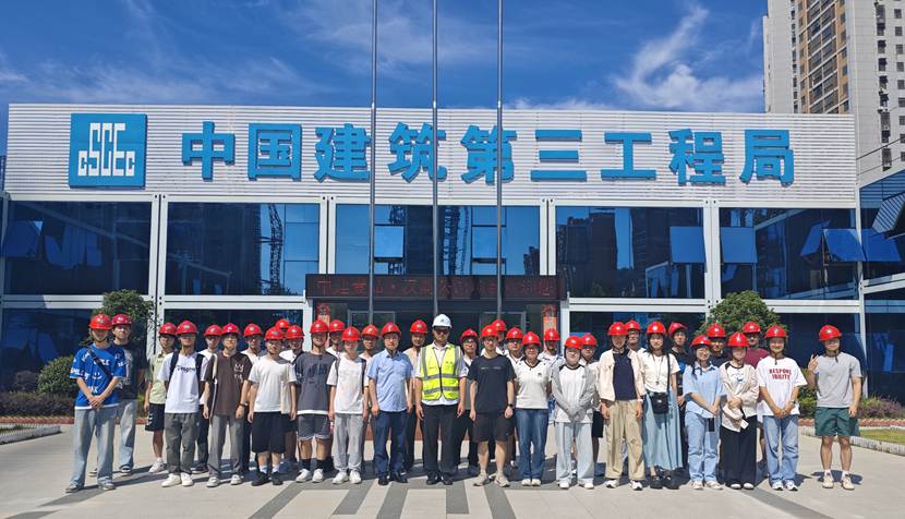 2025年7月1日上午,公司工程管理及智能建造专业本科生赴中建三局汉韵公馆开展研学实践活动。公司钟波涛老师和同学们在项目负责人的带领下,参观了智能工地、项目数字建造中心、装配式造楼机、无人机巡检系统、塔机远程控制系统、无人化物料运输系统等。